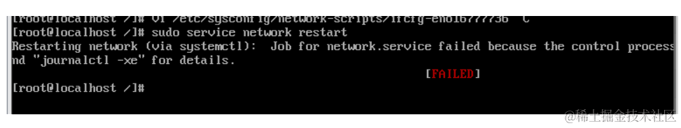 网络重启失败了,Job for network.service failed because the control process exited with error code