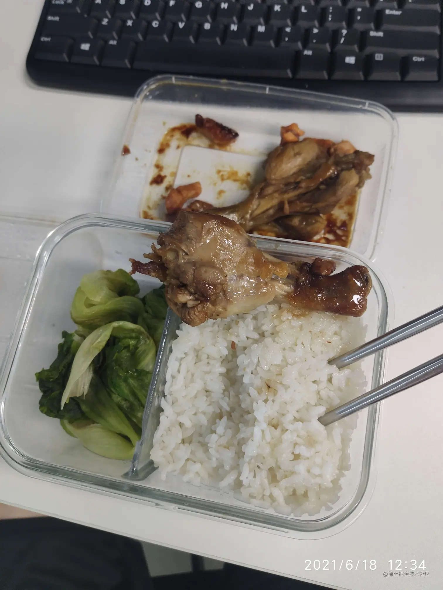 周末一次性做好8根鸡腿一顿带两根,一周直接解决了4顿,直接微波炉热6分钟焦焦的非常香。青菜前一天晚上煮好,米饭早上起床煮随便煮两个鸡蛋。