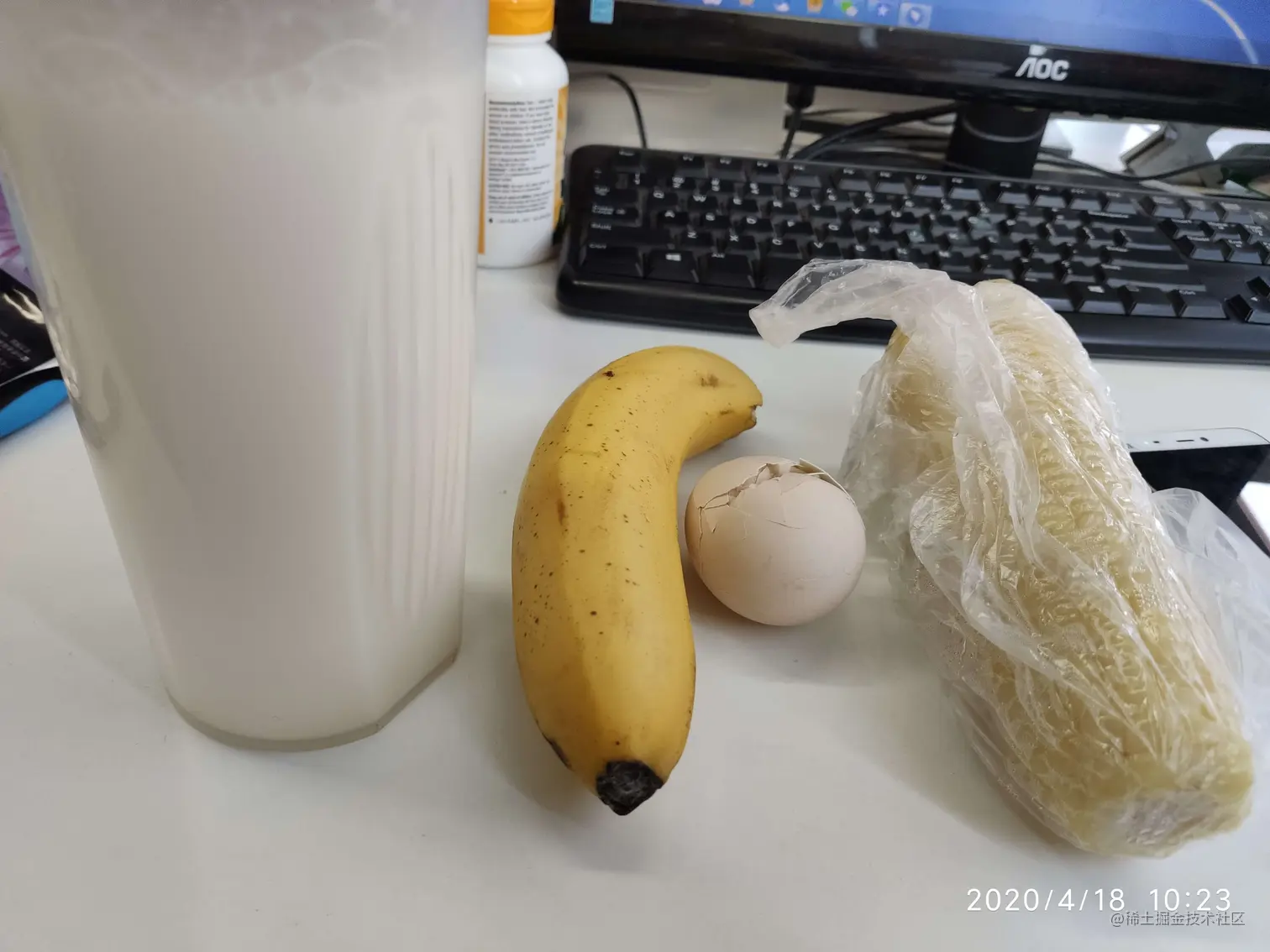 工作日早餐不是玉米就是菜包一直延续到现在,不过现在没有加香蕉了,鸡蛋,牛奶,蛋白粉。