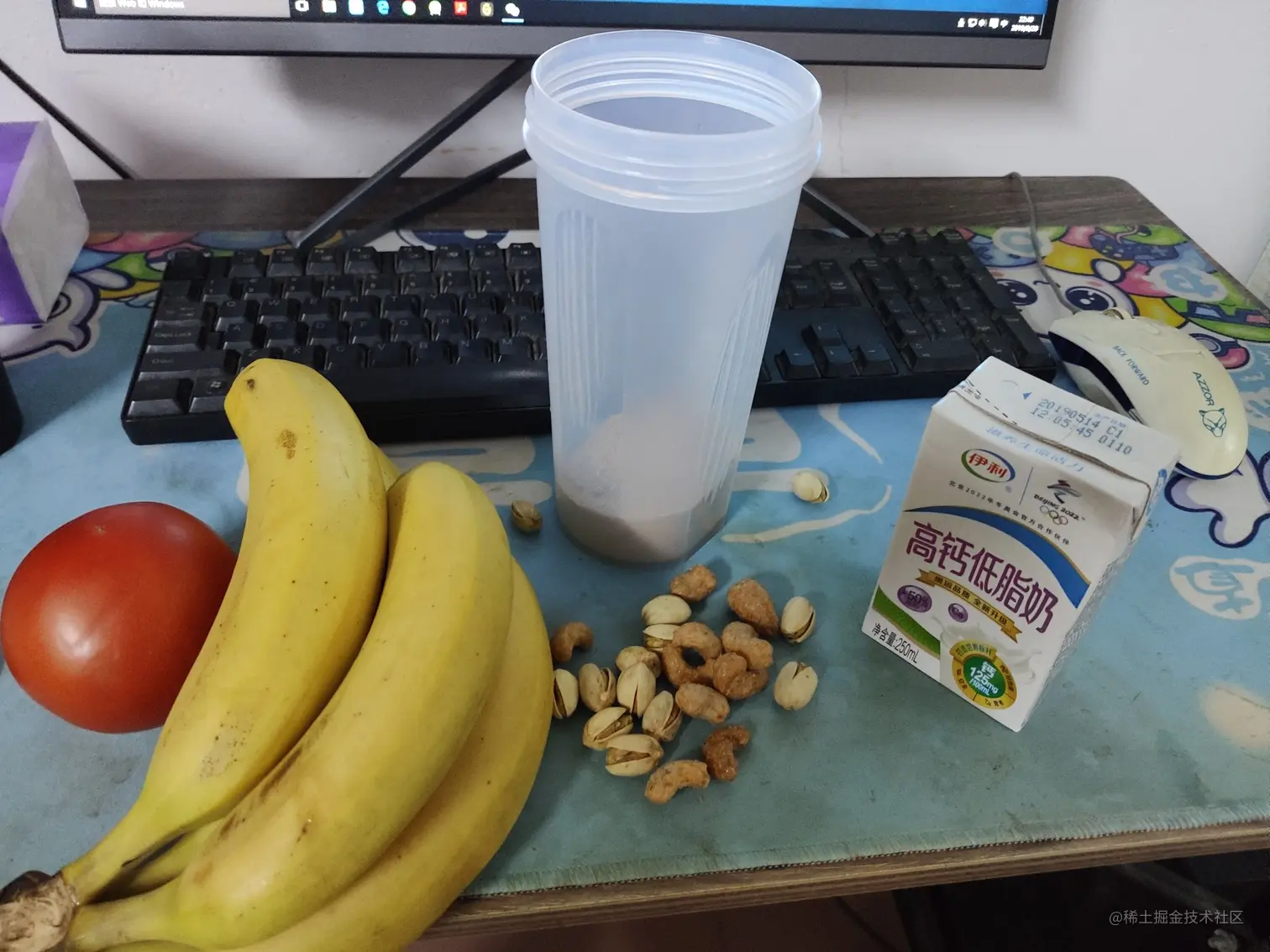 夜宵这一顿一直都是以香蕉为主,一直延续到现在,之前喜欢吃1kg香蕉,现在基本吃600g香蕉,西红柿一个(从小不喜欢吃,逼着自己吃),鸡蛋,牛奶,蛋白粉。