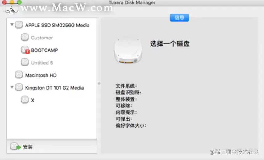 Tuxera NTFS for mac是一款可以转换 Mac系统磁盘格式的软件,它可以将FAT32格式转换成 NTFS、 exFAT格式。下一步,我们将具体演示如何操作。