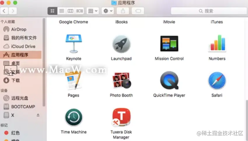 在 Mac系统中,我们可以通过 Finder的应用程序或者状态菜单来打开 mac磁盘管理功能,以实现磁盘格式转换。 在应用程序中打开 在 Finder窗口打开之后,如图所示,打开应用程序选项,找到 TuxeraDisk Manager程序。