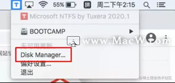 从 Tuxera NTFS for mac菜单选项中的“Disk Manager”按钮。