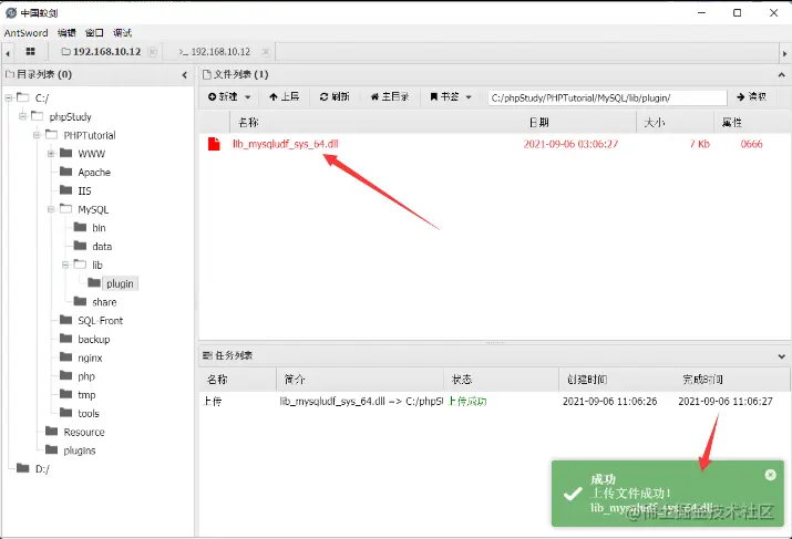 然后把解密过后的lib_mysqludf_sys_64.dll放到plugin文件夹下!