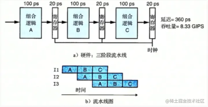该模式下的吞吐量是1/(300+20)ps = 3.125GIPS(每秒千兆条指令)