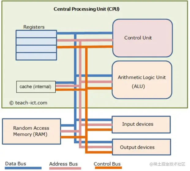 CPU和外部交互的交通大动脉就是三种总线:地址总线、数据总线、控制总线
