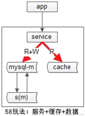 58同城采用 “服务+缓存+数据库”一套的方式来保证数据的一致性,由于58同城使用“双主当主从用”的数据库读写高可用架构,读写都在一个主库上,不会读到所谓“读库的脏数据”,所以数据库与缓存的不一致情况也不会存在。