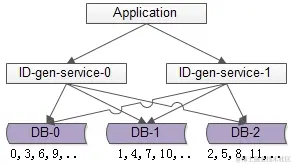 如上图所述,由1个写库变成3个写库,每个写库设置不同的auto_increment初始值,以及相同的增长步长,以保证每个数据库生成的ID是不同的(上图中库0生成0,3,6,9…,库1生成1,4,7,10,库2生成2,5,8,11…)