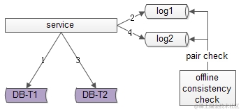 当然,我们还是需要一个离线的扫描工具,不停的比对日志log1和日志log2,如果发现数据不一致,就进行补偿修复