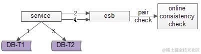 (2)因为返回业务线数据插入成功时,数据还不一定插入到T2中,因此数据有一个不一致时间窗口(这个窗口很短,最终是一致的)