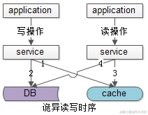 即在数据库层面,后发出的请求4比先发出的请求2先完成了,读出了脏数据,脏数据又入了缓存,缓存与数据库中的数据不一致出现了