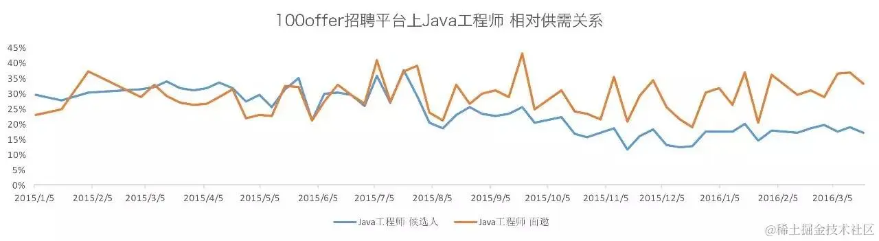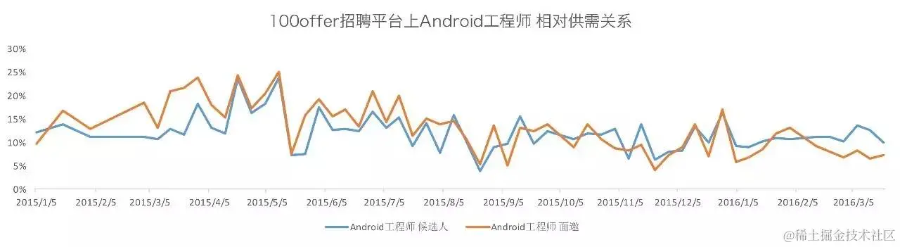 - 主动增加:其他行业人才涌入互联网求职市场(比如传统IT行业程序员转互联网技术);培训班批量生产iOS、Android,入门级产品经理。