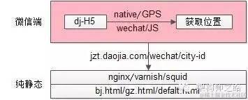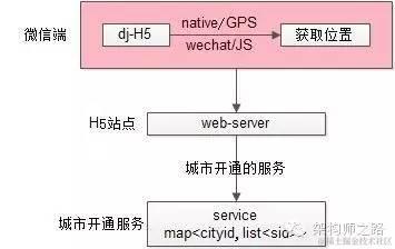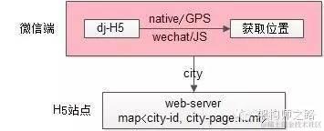 步骤一:微信端通过native的GPS定位或者微信的js-sdk获取用户当前所在城市,并往web-server发送http请求