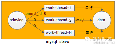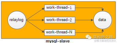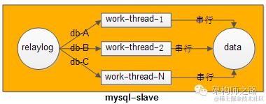 【方法一:相同库上的写操作,用相同的work-thread来重放relaylog;不同库上的写操作,可以用多个work-thread并发来重放relaylog】