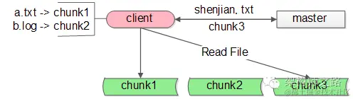 (2)client访问master问说文件在哪里,master告诉client在chunk3上