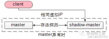 shadow-master会自动顶上成为master,虚IP机制可以保证这个过程对调用方是透明的