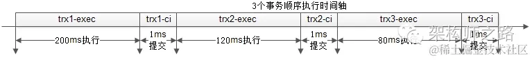 第三个事务执行80ms,提交1ms;
