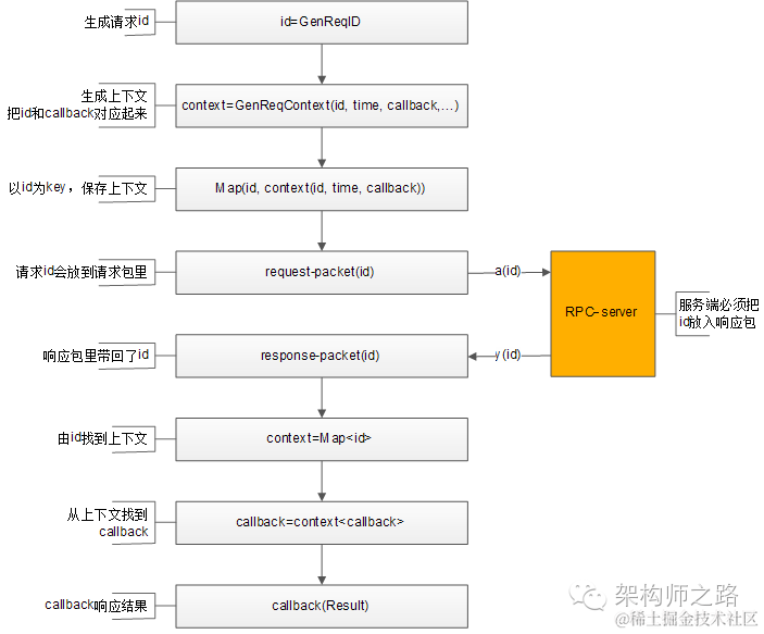 4)将req-id打在请求包里发给RPC-server