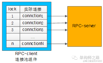 和下游RPC-server(一般是一个集群),建立N个tcp长连接,即所谓的连接“池”