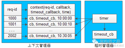 如果超时回调执行后,正常的回包又到达,通过req-id在上下文管理器里找不到上下文,就直接将请求丢弃(因为已经超时处理过了)。