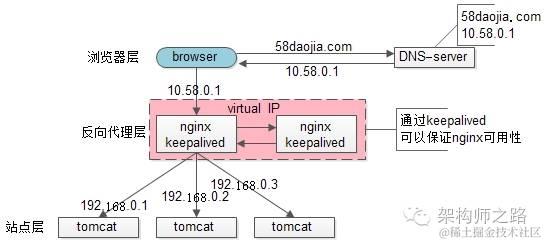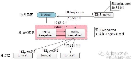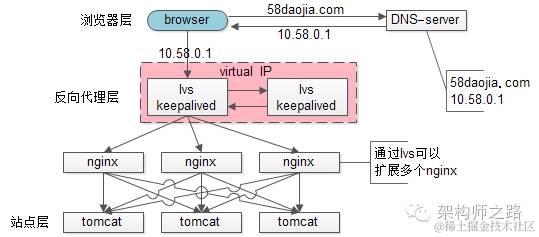 末了,上一篇文章有同学留言问58到家采用什么方案,58到家目前部署在阿里云上,前端购买了SLB服务(可以先粗暴的认为是一个lvs+keepalived的高可用负载均衡服务),后端是nginx+tomcat。