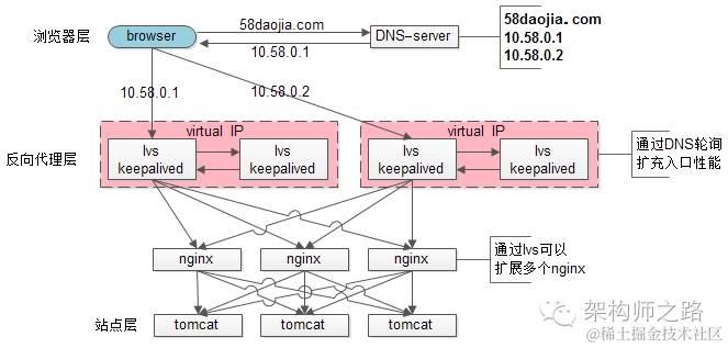 1)通过DNS轮询来线性扩展入口lvs层的性能