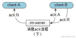 5)im-server在成功处理后,回复client-B一个ack响应包,即ack:A