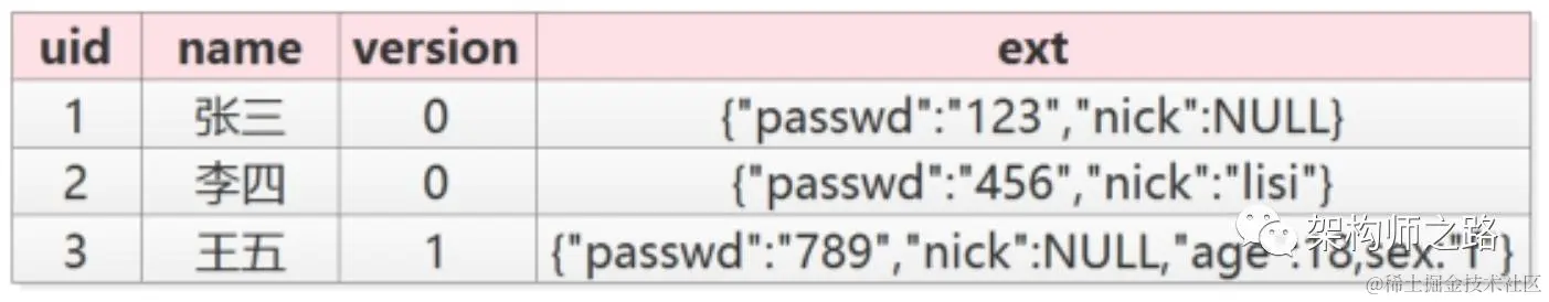 如何将不同品类,异构的数据统一存储起来,采用的就是类似version+ext的方式: