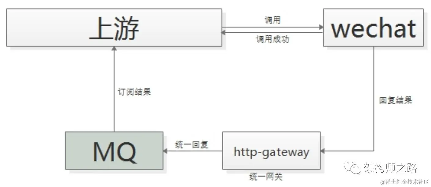 这里需要注意的是,不应该由回调网关来调用上游来通知结果,如果是这样的话,每次新增调用方,回调网关都需要修改代码,仍然会反向依赖,使用回调网关+MQ的方案,新增任何对微信支付的调用,都不需要修改代码啦。