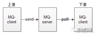 在某些业务场景之下(具体哪些业务场景,见《到底什么时候该使用MQ?》),可以采用“MQ推送”,上游将消息发给MQ,MQ将消息推送给下游。