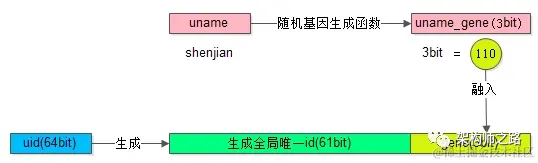 3)接着把3bit的uname_gene也作为uid的一部分,如上图屎黄色部分