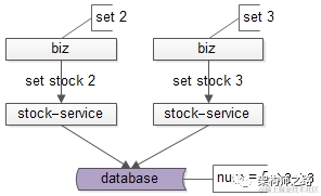 - 这两个设置库存的接口并发执行,库存会先变成2,再变成3,导致数据不一致(实际卖出了5件商品,但库存只扣减了2,最后一次设置库存会覆盖和掩盖前一次并发操作)