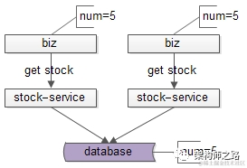 如上图所示,两个并发的操作,查询库存,都得到了库存是5。