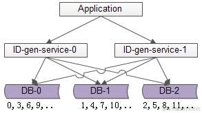 如上图所述,由1个写库变成3个写库,每个写库设置不同的auto_increment初始值,以及相同的增长步长,以保证每个数据库生成的ID是不同的(上图中库0生成0,3,6,9…,库1生成1,4,7,10,库2生成2,5,8,11…)