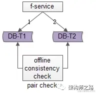 如上图所示,线下启动一个离线的扫描工具,不停的比对正表T1和反表T2,如果发现数据不一致,就进行补偿修复。