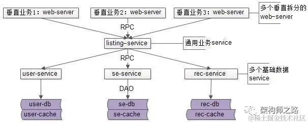 - 垂直业务要通过多个RPC接口访问不同的基础数据service,service共有是服务化的特征