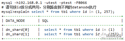 SQL语句前加上explain即可知道SQL语句的路由情况。