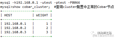 被定义在一个cobar集群中的cobar节点之间都会发送心跳,所谓的心跳就是上面提到的show cobra_status; 这样的话,就为每一个cobar节点提供了知道同一个集群内的所有cobar信息的机会。当然,被下线,或者心跳超时的cobar节点的信息不会被显示出来。