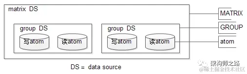 对应上面图例:matrix数据水平分为了两个group,每个group有主备atom组成。