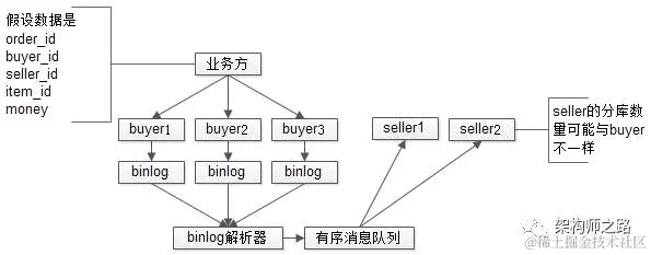 如上图所示:查询买家所有买到的订单及商品可以直接定位到某一个分库,但要查询卖家所有卖出的商品,业务方就必须遍历所有的买家库,然后对结果集进行合并,才能满足需求。