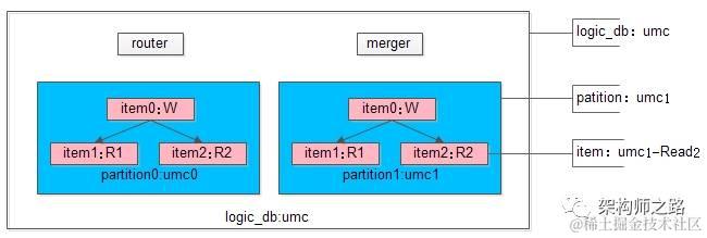 PARTITION:数据库分区,可以理解为分库,例如umc0和umc1,这个对上游是透明的