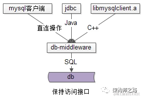 所谓保持访问接口,是指上游对数据库的访问接口完全不用变,中间件服务对上游来说,就是数据库。