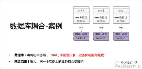 业务1,业务2,业务3,因为join导致数据库实例耦合在了一起。