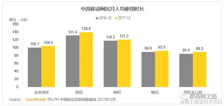 - 00后最爱玩手机,月均使用时长为139.8小时,即日均4.7小时