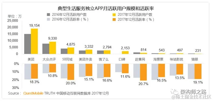 - 各大生活服务平台用户规模都在增长