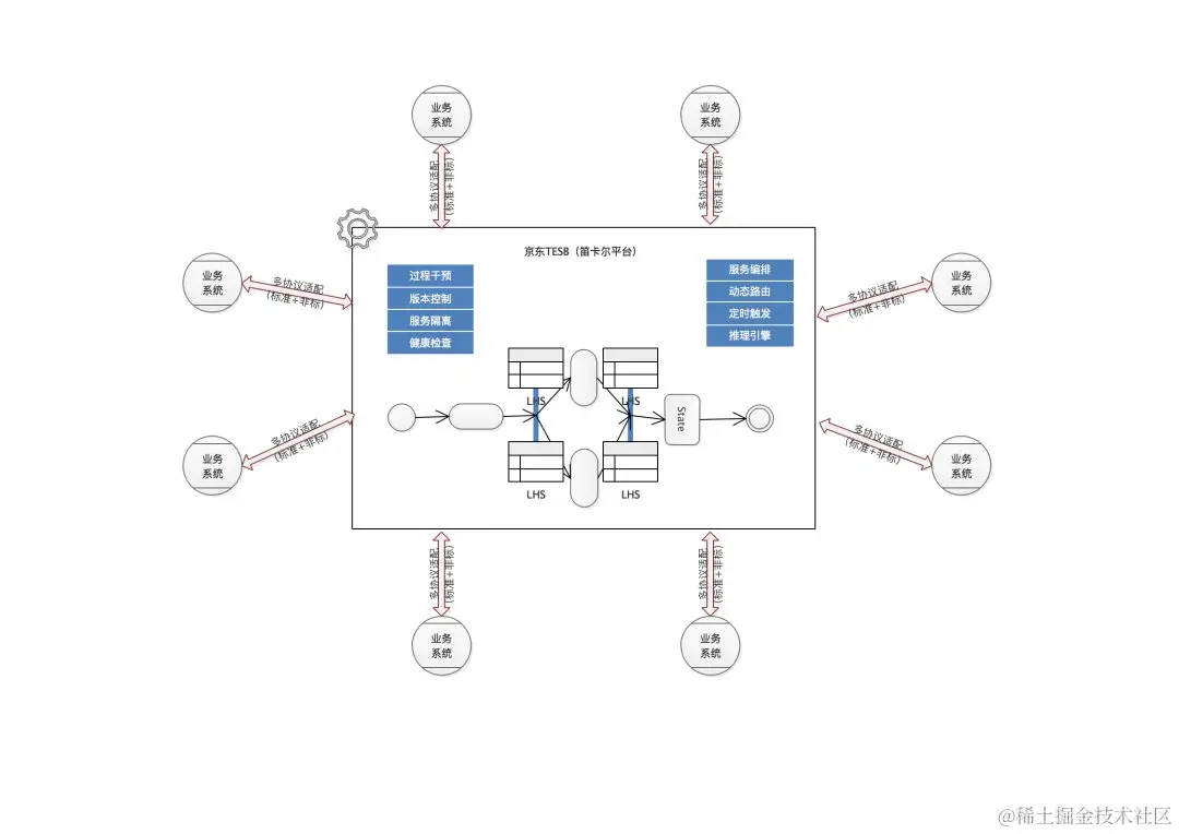 在企业对接的过程中,TESB(京东笛卡尔平台) 在面向数据转换过程的同时,需要面向业务服务。而采购场景是复杂的交易场景,传统的ESB根本无法满足业务需要。