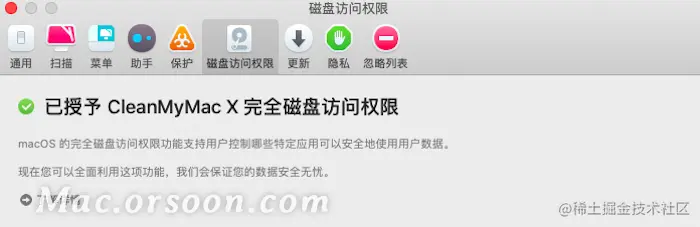 在下载安装完毕CleanMyMac后,若想要使用它的功能,CleanMyMac会提示授权磁盘访问权限。只有将此开启,CleanMyMac才能全面保护我们的数据。