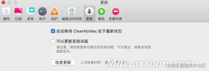 用户可勾选是否自动保持CleanMyMac处于最新状态,检查更新的情况。