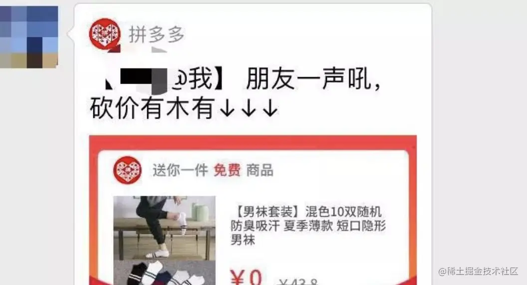 社群分享里我们要注意小程序卡片封面、分享卡片标题、分享社群文案设计。如下是拼多多小程序的社群分享截图