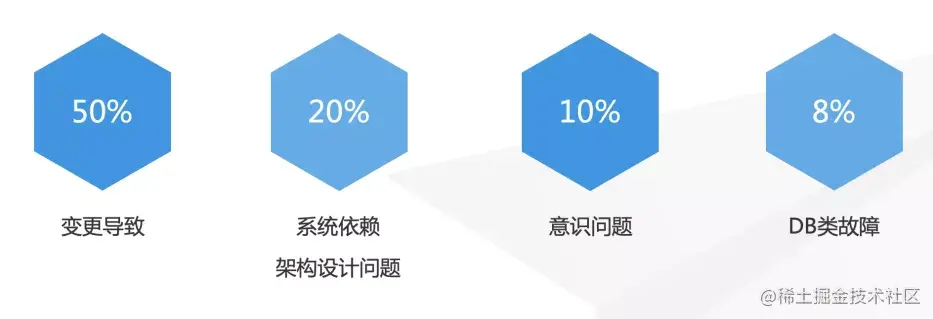 将线上事故或者稳定性问题不完全分个类,大概可分为:变更导致、系统依赖&架构设计问题、意识问题、DB等中间件问题。